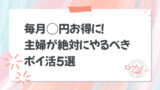 特に主婦やママにとって、日々の家計管理は大きなテーマ。子育てや家事の合間に「収入を増やす」のは簡単ではありませんよね。そんな中でも、ポイ活なら“今ある支出”をベースにポイントを貯めて活用できるため、時間や体力に余裕がない方でも気軽に取り入れられます。