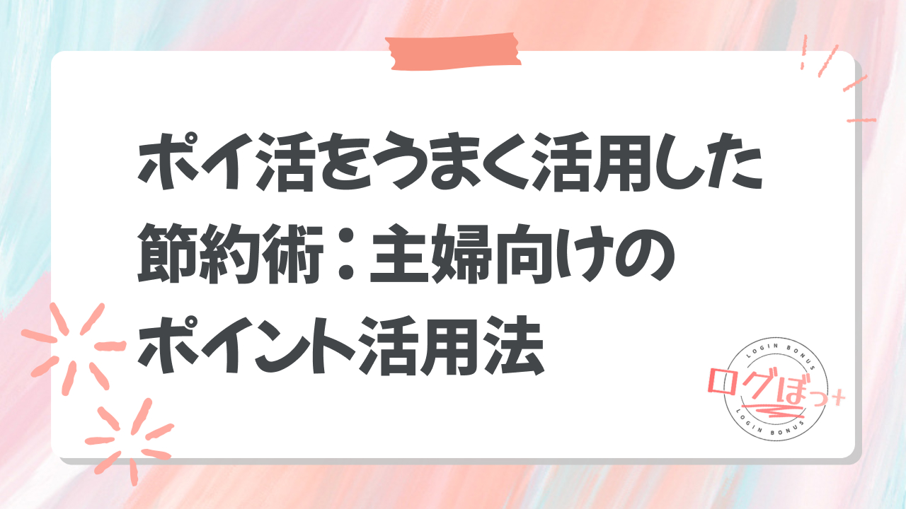 そんな主婦の方にぴったりなのが、ポイ活を取り入れた節約術です。